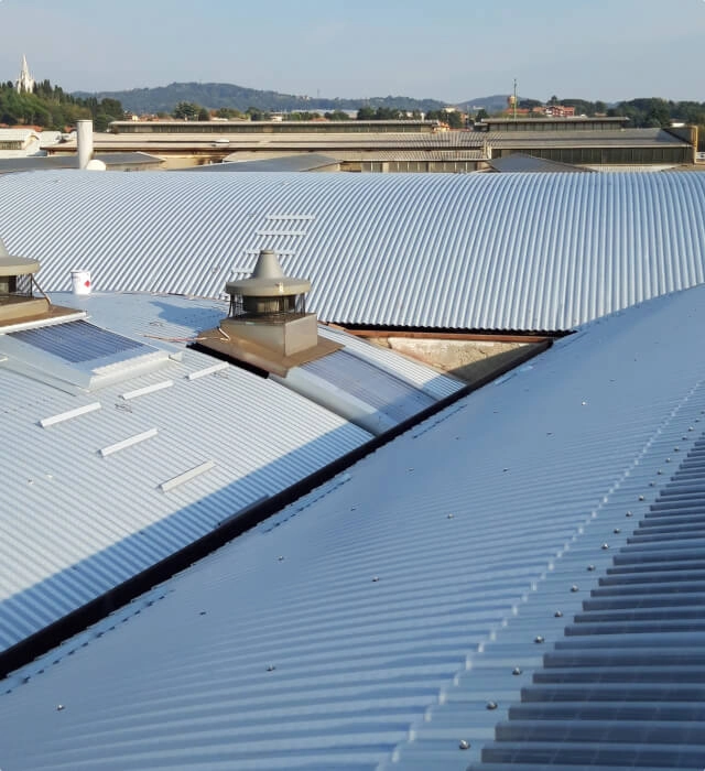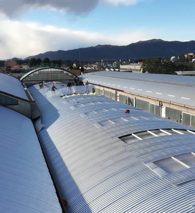 La sfida che ci veniva posta era quella di rifare la copertura di quest’azienda a tempi di record, 4.000 mq in pochissimo tempo! con la collaborazione di un’azienda partner siamo riusciti a bonificare questa copertura e rifarne il rivestimento metallico in soli 4 giorni. Ben 1.000 mq al giorno! Non male, vero?