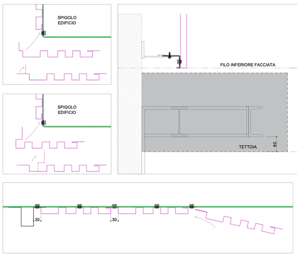 - Rivestimento in alluminio pressopiegato a disegno: grande flessibilità.