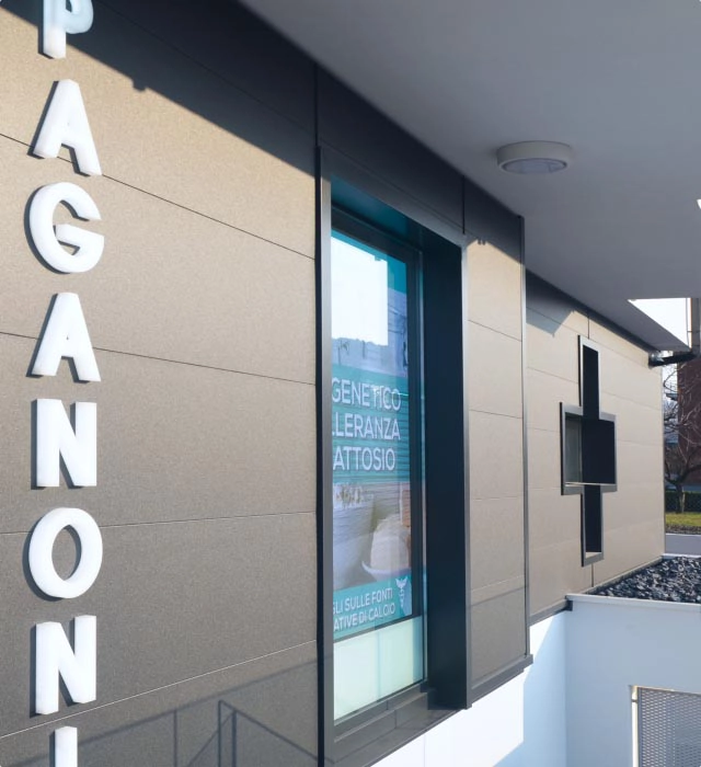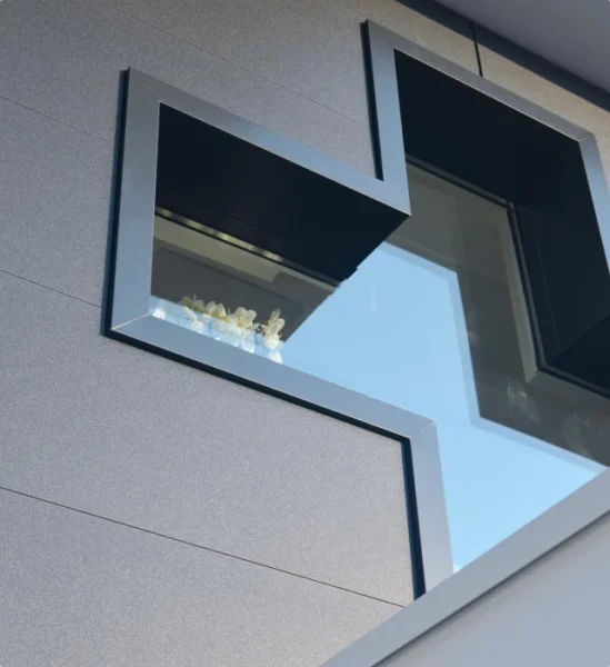 Per questo edificio commerciale di nuova costruzione è stata impiegata una facciata ventilata con rivestimento metallico. È stata creata la struttura portante in alluminio, predisposto l’isolamento termico con pannelli in polistirene e montato il rivestimento con pannelli in alluminio Alubel "Easywand".