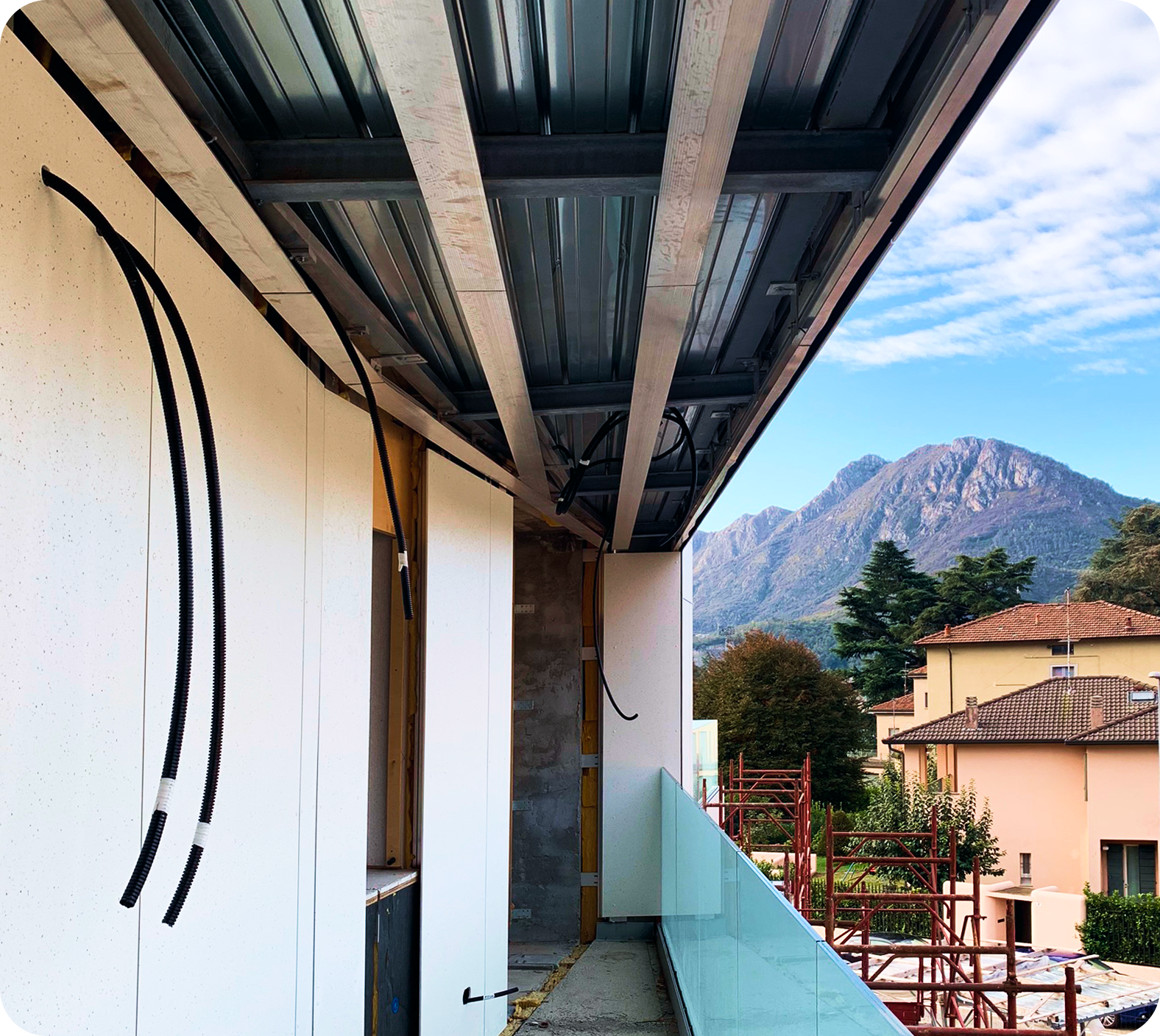 Quando abbiamo iniziato a ragionare su come realizzarlo, ci siamo resi conto subito della complessità dell’opera. In cantiere c’era solo la carpenteria: una base reale, non perfettamente allineata al disegno finale, con volumi non standard e spigoli fuori squadra.