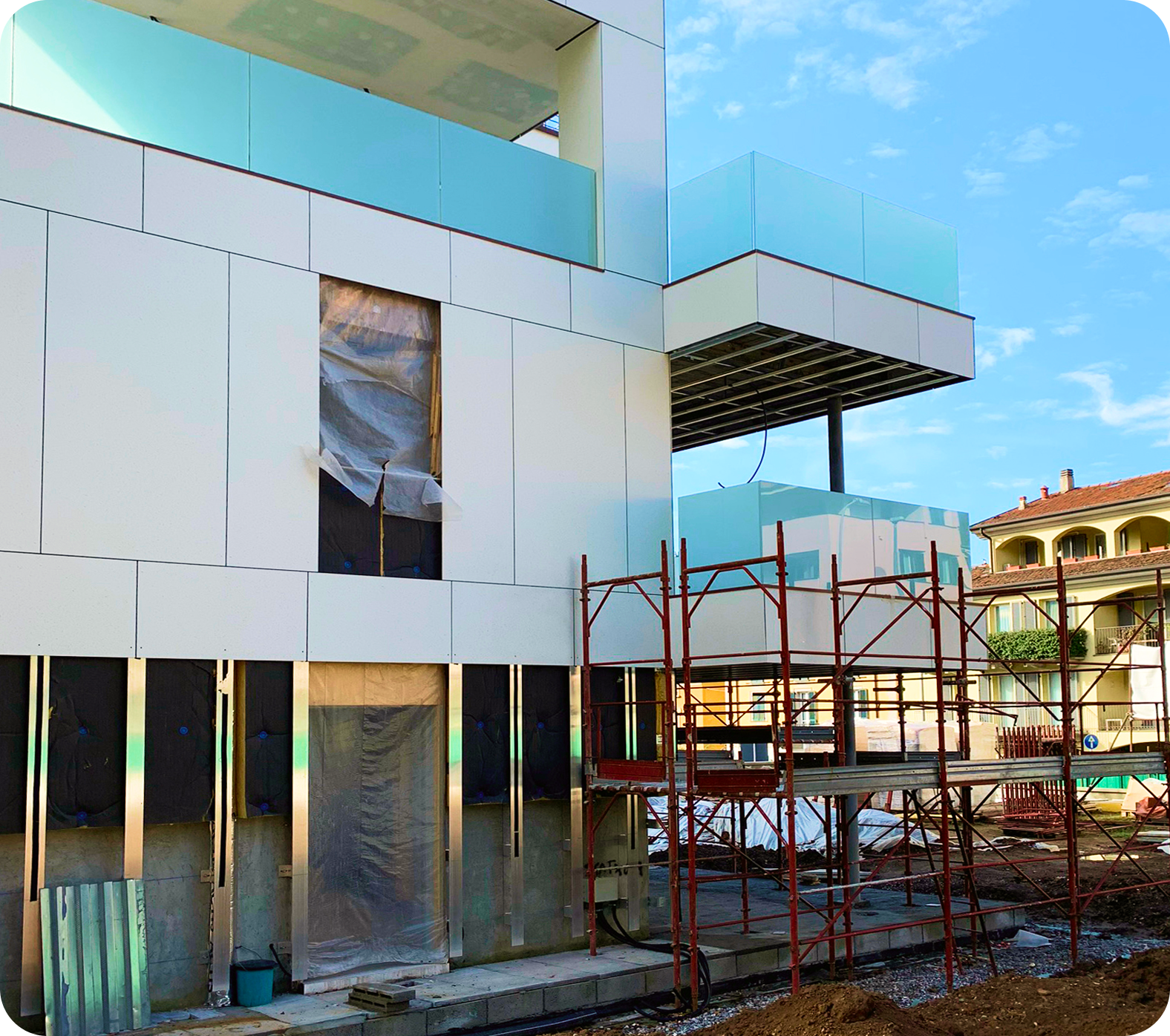 ll progetto, firmato dall’Arch. Andrea Valsecchi, era bello ed ambizioso ma esisteva solo sulla carta. Serviva quindi un interlocutore tecnico: qualcuno con cui ragionare davvero, condividere scelte, prendere decisioni, costruire “a tavolino” ogni dettaglio esecutivo del rivestimento esterno della facciata, e poi... realizzarlo.