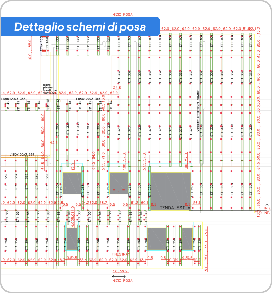 Questa soluzione ci ha permesso di avere tutto il materiale della misura perfetta, rilevata direttamente in opera: abbiamo ridotto gli scarti e limitato al minimo le lavorazioni in cantiere.