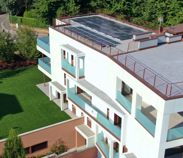 La scelta dei materiali e delle finiture ha prodotto un edificio ad altissime prestazioni energetiche